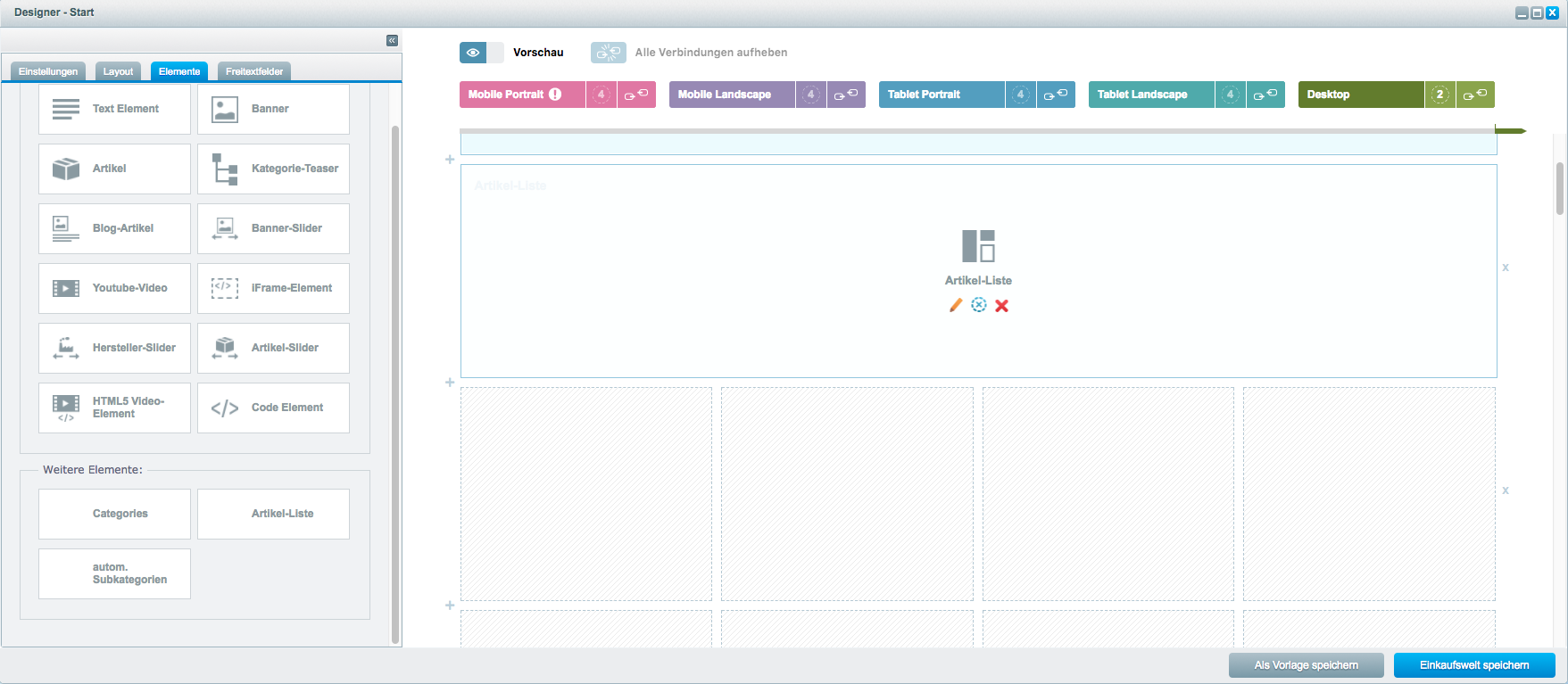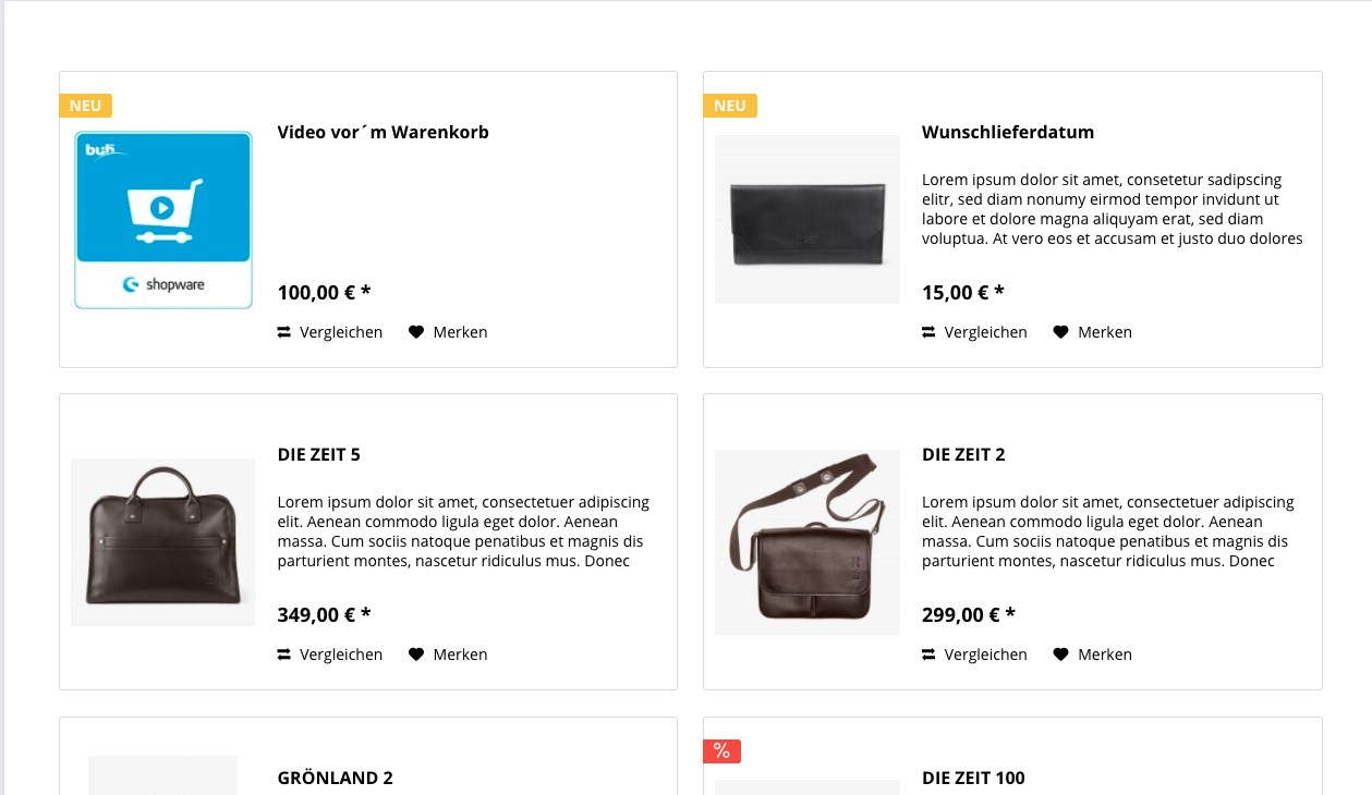 Artikellisten in Einkaufswelten für Shopware