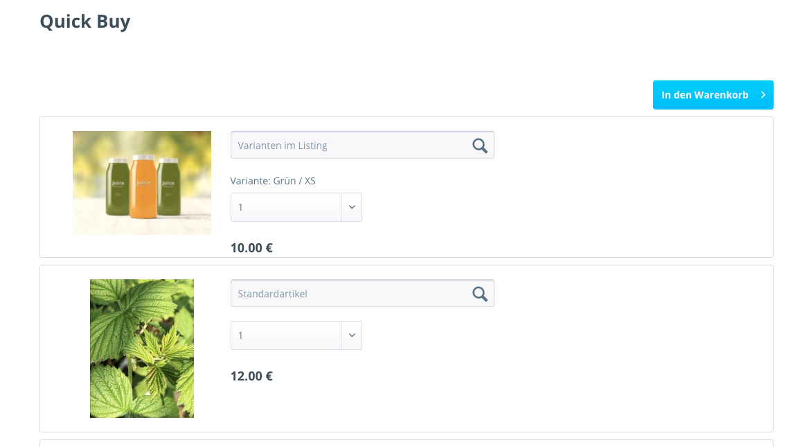 Artikelschnellkauf für Shopware