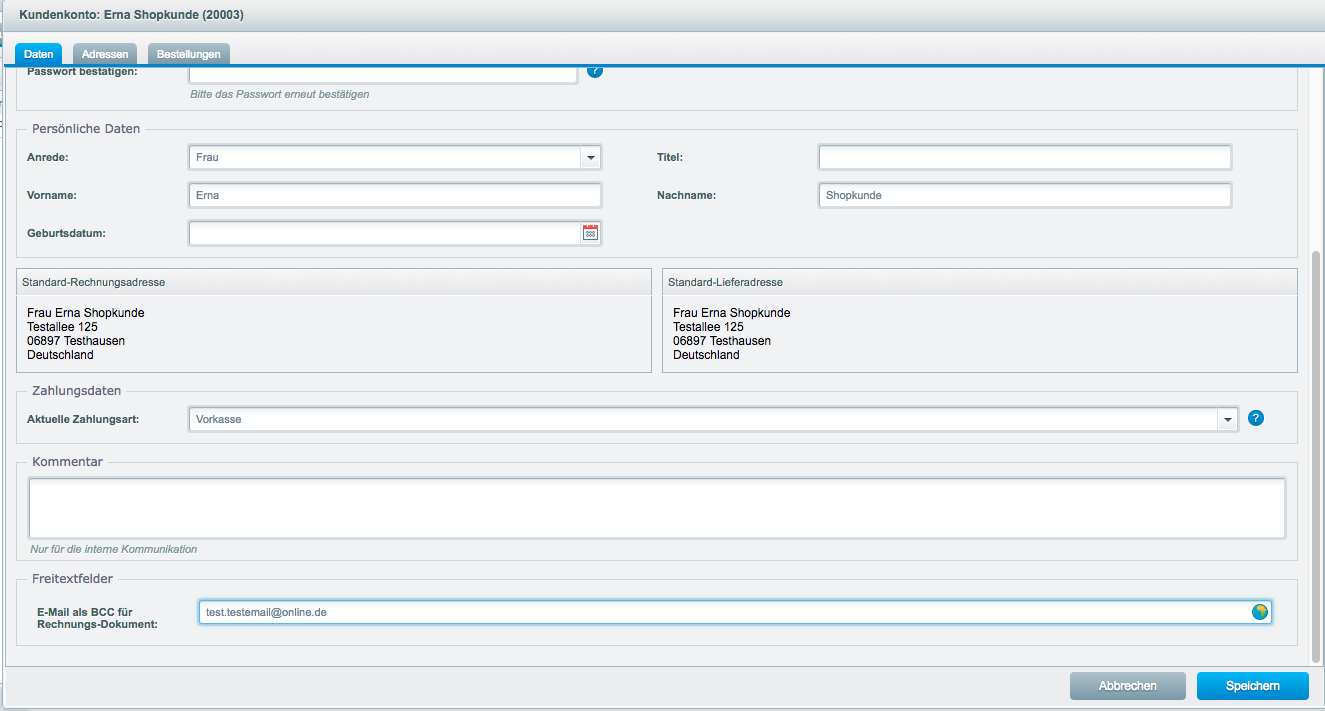 Das Plugin "Belegversand an weitere E-Mail-Adresse" stellt eine zusätzliche E-Mail-Adresse bei jedem Kunden zur Verfügung, welche als BCC beim E-Mail-Versand der Rechnung für eine Bestellung des Kunden verwendet wird. Hierbei handelt es sich um ein backendbasierendes Plugin. Der Shopbetreiber muss die zusätzlich E-Mail-Adresse händisch in den Kundendaten eintragen. Aktuell ist diese Erweitung nur beim Versand von Rechnungen möglich, perspektivisch soll dies auf alle weiteren Belege erweitert werden.