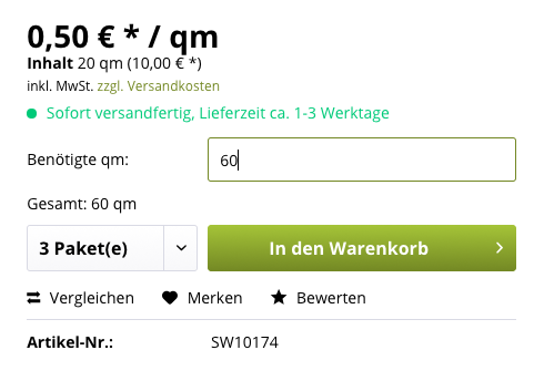 Das Plugin "Flächenberechnung" wurde für die Berechnung von Verpackungseinheiten entwickelt. Sie bieten z. B. in Ihrem Shop Laminat an.