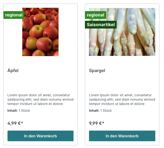 So kannst du z. B. deinem Kunden signalisieren ob ein Artikel regional ist, für welches Alter er geeignet ist, ob vegetarisch oder vegan .... die Möglichkeiten sind unendlich.