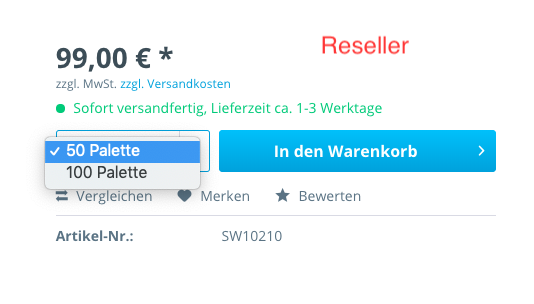 Stell dir vor, dass du ein Großhändler bist und deine Waren an unterschiedliche Kundengruppen verkaufen möchtest. Jede Kundengruppe hat jedoch ihre eigene Verpackungseinheit, die abgenommen werden soll. Versetzen wir uns z. B. in die Lage eines Tierfutterhändlers, der Dosenfutter verkaufen möchte. Dieser bietet für Shopkunden (Endkunden) pro Stück-Kauf, für Tierheime pro Paket und für Wiederverkäufer (Händler) pro Palette an. Diese Staffelung bzw. unterschiedlichen Einheiten sind mit einem Standard-Shopware nicht abzubilden.