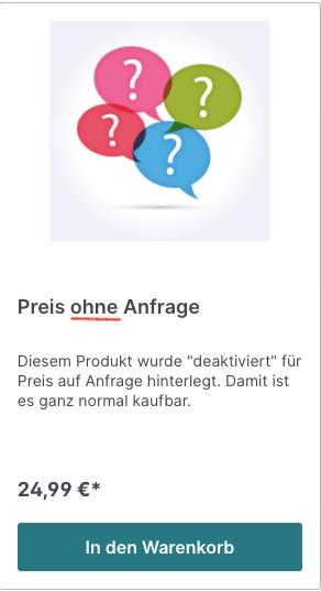 Mit Preis auf Anfrage bist du nicht gezwungen für deine Produkte feste Preise festzulegen. Besonders zum tragen kommt dies, bei hochindividuellen Produkten oder bei Produkten bei denen zwingend eine Beratung notwendig ist. Du kann jedes Produkt anders konfigurieren und das Plugin pro Verkaufskanal aktivieren. Den Buttontext kannst du wie gewohnt über Textbausteine frei gestalten. Die Anfragen werden über das vom Shop bereit gestellte Kontaktformular versendet. Somit ist auch der Datenschutz gewährleistet.