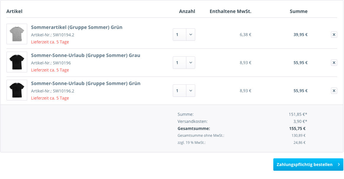 Artikel z - 4x im Warenkorb