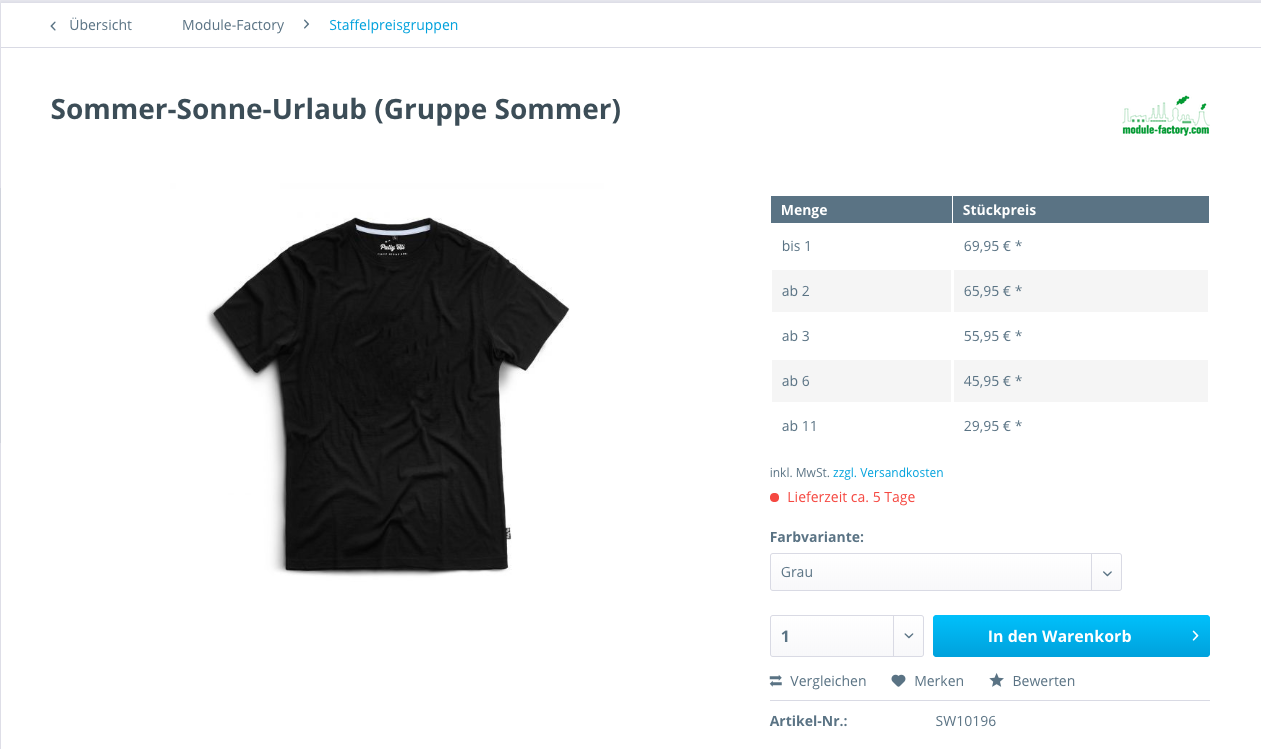 Mit unseren Plugin ist es jedoch möglich verschieden Artikel zu einer Gruppe zusammenzusammen und diese Staffelung gruppenintern zu verwenden. Im Detail bedeutet das, dass wenn dein Kunde Artikel x, y und z kauft, und diese alle der Gruppe A zugewiesen sind, er den Mengenpreis für die Gruppe A erhält.