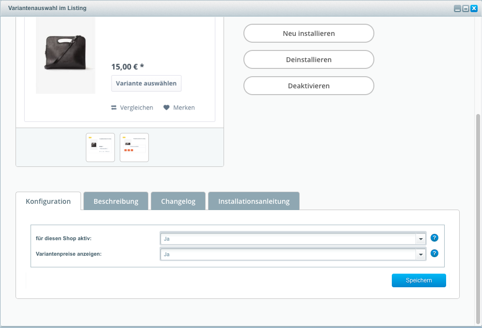 Variantenauswahl im Listing für Shopware