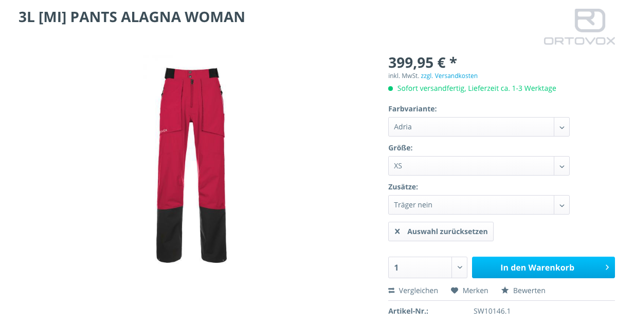 Bei Auswahl einer Variante wird man zu den Produktdetails weitergeleitet, um entweder eine andere Variante zu wählen oder abschließend bestellen zu können.